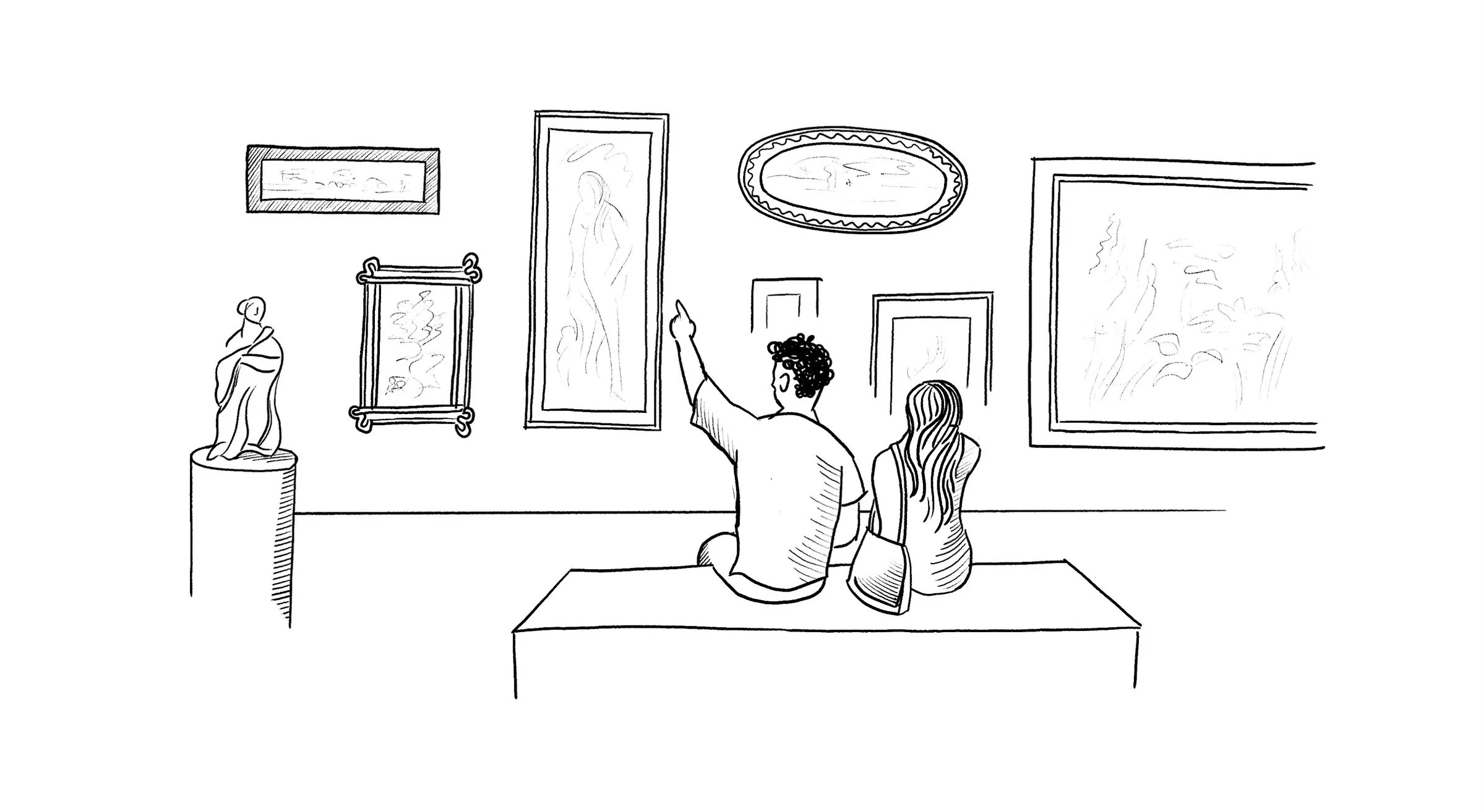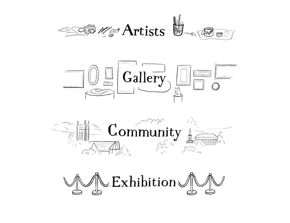We used a hand drawn, grayscale style to bring attention to the colorful student artwork.